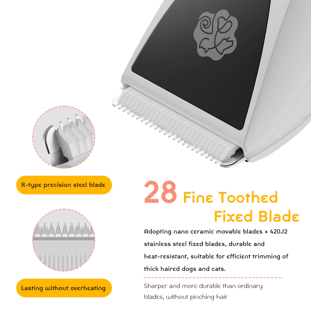 Optional blade for precise grooming of paw hair, ear fur, and other sensitive areas.