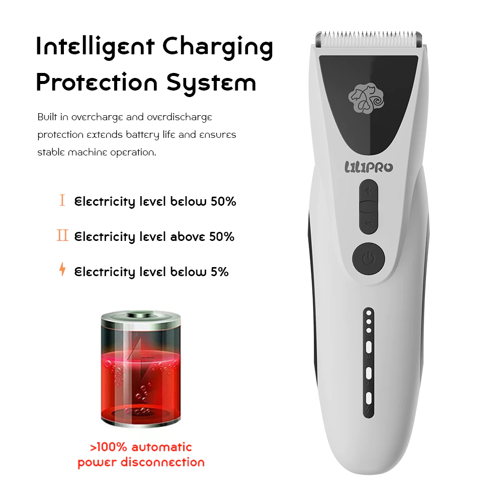 ● Nano Ceramic Moving Blade + 420J2 Stainless Steel Fixed Blade ● Built-in 2600mAh Rechargeable Li-ion Battery ● Charging Time: 3 Hours Operating Time: 7 Hours ● 3-Speed Adjustment: 5500 / 6000 / 6500 RPM ● Overcharge and Over-discharge Protection ● Accessories: Charging Cable, Lubricating Oil, Cleaning Brush, 8 Limit combs(3mm, 6mm, 9mm, 12mm, 16mm, 19mm, 22mm, 25mm), User Manual